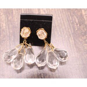 Miriam Haskell Earrings Crystal Briolette Drops Dangle Chandelier Glass Goldtone