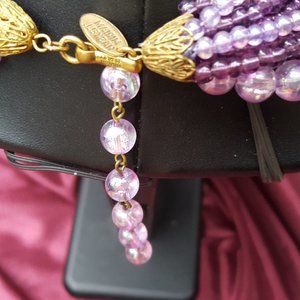 Miriam Haskell Multi Strand Size Purple Beads Signed Necklace