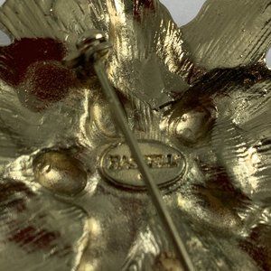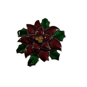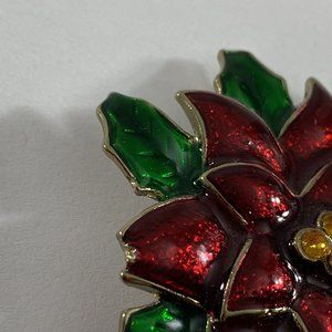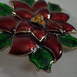Signed Haskell Poinsettia Red Green Enamel Christmas Holiday Brooch Pin 2.25" in great condition.