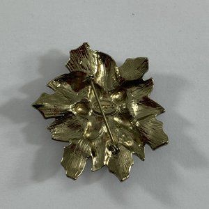 Miriam Haskell Poinsettia Red Green Enamel Christmas Holiday Brooch Pin