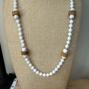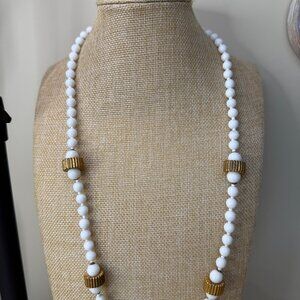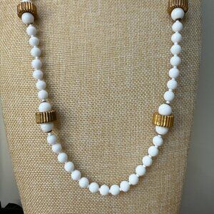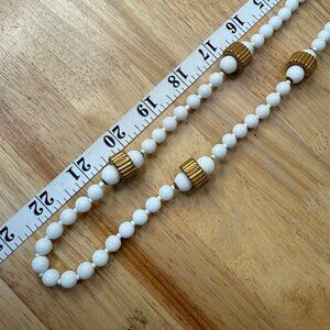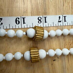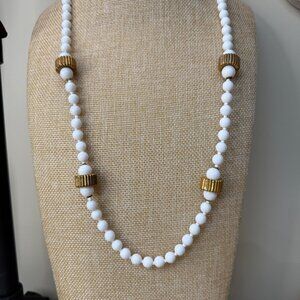 Miriam Haskell Vintage Milk Glass Bead Necklace With Gold-Tone Accents