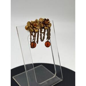 Miriam Haskell Vintage Signed Amber Crystal Floral Screw Back Chain Drop Earring