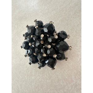 Miriam Haskell unsigned 1930s silver tone black beaded rhinestone pin brooch