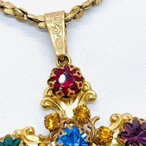 Miriam Haskell Jeweled Cross Pendant & Necklace Very Rare Vintage In Euc