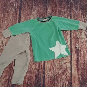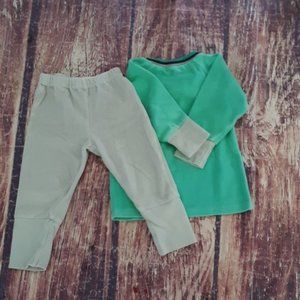 Up for grabs: Green and gray two-piece pajamas by Mirillus, size 2. Velour fabric. 80% cotton, 20% polyester. Elastic waist. Great condition, normal wear only. Smoke-free pet-free home.