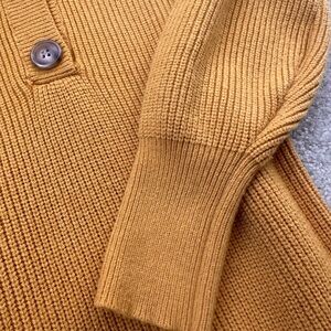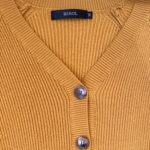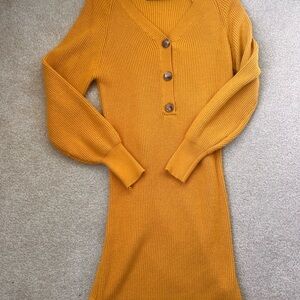 Mirol Mustard Yellow Ribbed Knit Sweater Dress | V-Neck Button Front