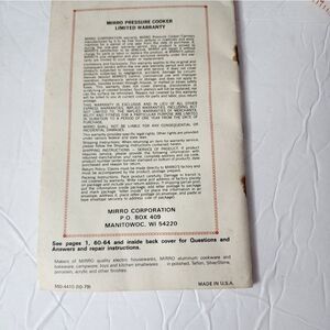 Mirro Speed Pressure Cooker Canner Deluxe Model Vintage Softcover Excellent