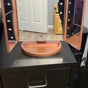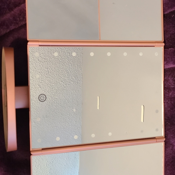 Beautify mirror in pink. Works with regular wall charger or triple a batteries.
