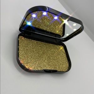 Travel size Mirrored 🪞 eyelash case with Touch On/Off Vanity lights 🤩🤩🤩. Perfect purse 👛 accessory!!!! Color Gold glitter ✨