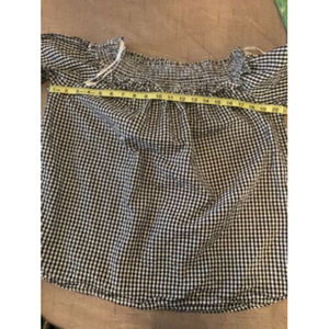 Size SMALL women's Mirror Image boat neck/ off the shoulder style checkered loose fitting blouse. Super cute no stains or holes!