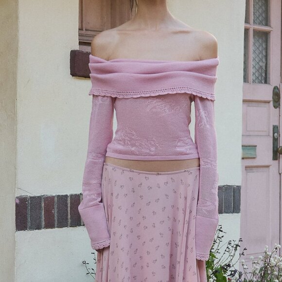 Mirror Palais Pointelle Knit Off-Shoulder Top in Puce