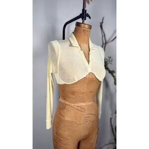 This Mirror Palais underwire crop top in size XS is a dreamy addition to any wardrobe. With its delicate corset-inspired design and structured underwire support, this top blends modern femininity with a touch of vintage romance. The soft white fabric makes it easy to pair with high-waisted skirts or denim for a chic, effortless look. Perfect for date nights, special occasions, or adding an elegant touch to your everyday style.