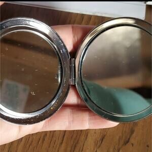 Gorgeous little hinged mirror compact. 2 mirrors with different magnifications. Smooth chrome back. Front is a gorgeous boho design. Perfect to slip in your purse or pocket for on the go.