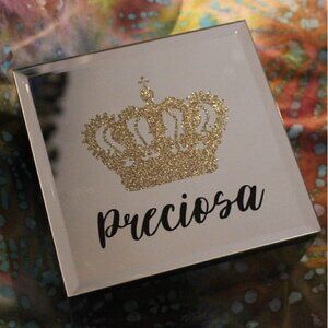 Mirrored Box Gold Crown Preciosa Black Interior 5" X 5" X 2.5" for Girls