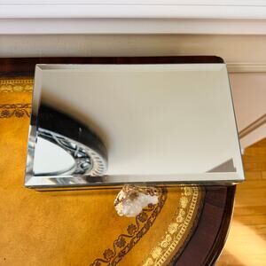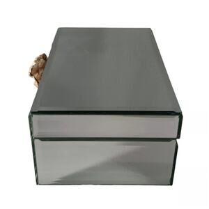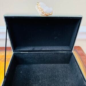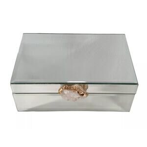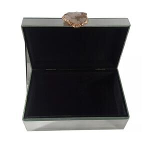 Mirrored Glass Hinged 8" Trinket Jewelry Box W/ Amethyst Geode Knob Gold Trim