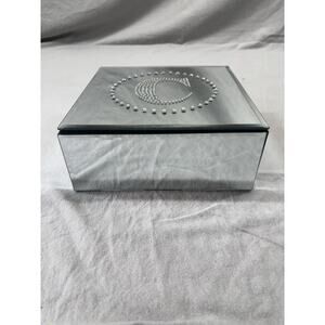 The Mirrored Jewelry Box is a stylish and functional storage solution for organizing your jewelry collection. This square-shaped box features a silver glass design with a mirrored exterior, adding a touch of elegance to your decor. With dimensions of 8 inches in length and depth, this branded jewelry box includes a jewelry organizer and storage compartments, perfect for keeping your accessories neat and tidy. Clearly the owner of this box is well named, and possibly royalty :)