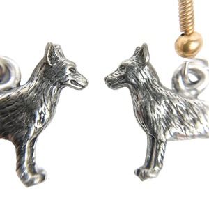 Mirrored Pair of German Shepherd Charm Earrings w silver tone Fishhook backs