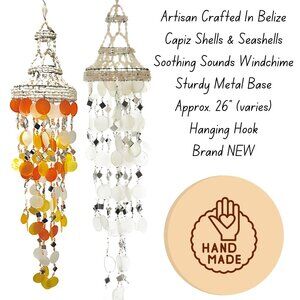 Mirrored Tile Capiz & Seashell Belize Artisan Made Windchimes Bohemian Decor NEW