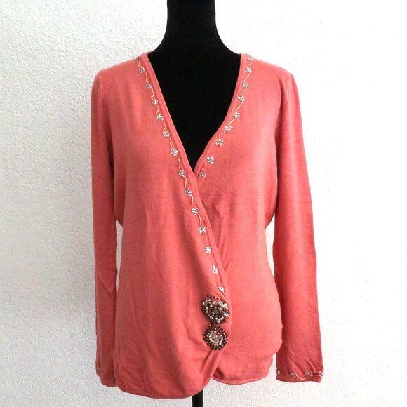 Mirrors, Peach/pink V-neck sweater with sequins and beads details