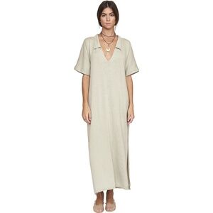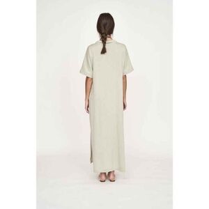 Adelaide Knit Oversized V-Neck Collar Caftan, Powder. V neckline with collar Oversized short sleeves Side slits at bottom of skirt 100% Cotton About Mirth: Started by sisters in 2016, Mirth is a line of ethical and comfortable women’s clothing made with special block printed and handloomed textiles. From the beach to dinner and everywhere in between, they want to inspire a purposeful life.