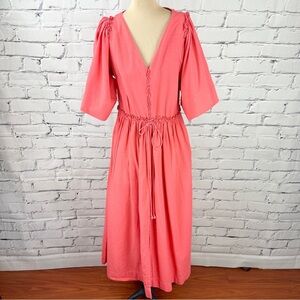 Mirth Maxi Dress Coral Pink Cotton Small Handmade Ruffled Flutter Sleeve V-neck
