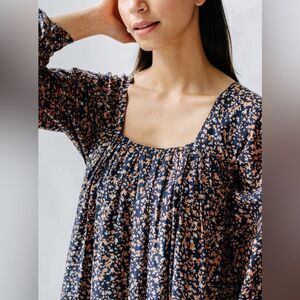 The gorgeous fabric is hand block printed in small batches by a family of 4th generation printers in Bagru, India. Each part of the sustainable process is done by hand in this printing village.