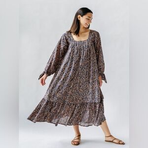 Details a fit: a loose and flowy caftan-slash-dress will be a staple in your closet and a perfect transition piece from fall through winter. It is comfy and light, and covers all the right places. Pullover styling with a keyhole and button closure in the back. Tie cuff and pockets.