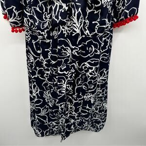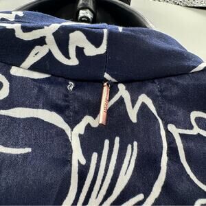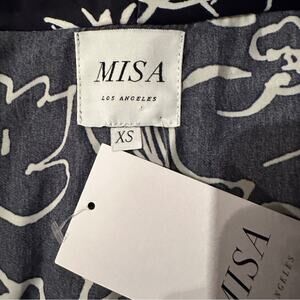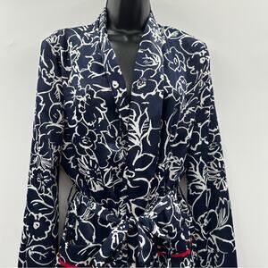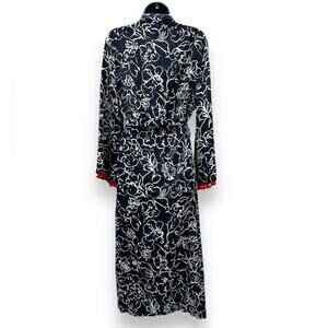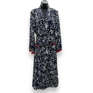 Misa Azores Tasseled Navy Blue & White Floral Long Sleeve Tie Long Kimono XS NEW