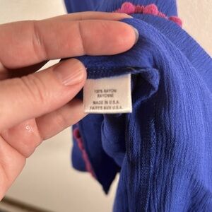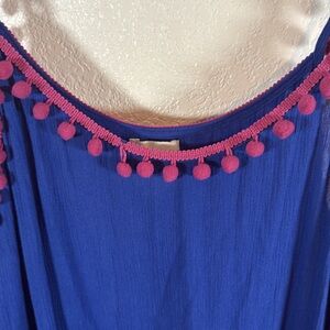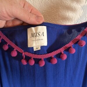 Misa Blue Pink Pom Poms Trim Mini Dress Size Medium Summer Vacation