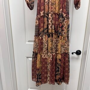 Misa Brown Tan Patchwork Long Sleeve Ahreana Dress
