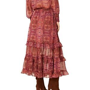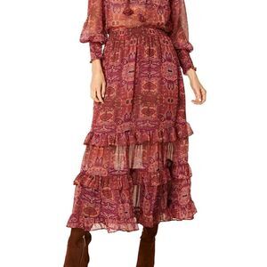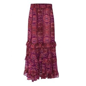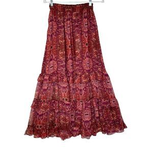 Misa Emanuela Septima Tapestry Burgundy Ruffle Maxi Skirt | Size M