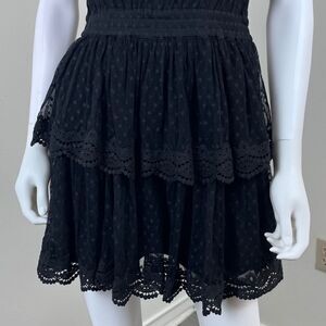 Misa Liat Point D'esprit Size XS Black Swiss Dot Lace Tiered NEW Mini Dress