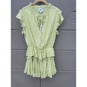 Misa Lilian Tiered Honeydew Ruffle V-Neck Clip Dot Mini Dress Size XS coquette