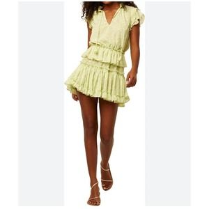 Misa Lilian Tiered Honeydew Ruffle Tie V Neck Clip Dot Mini Dress Size XS NEW