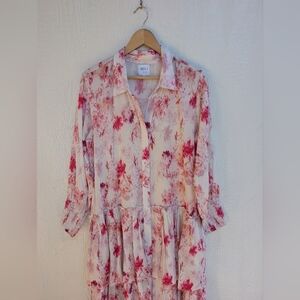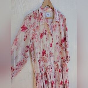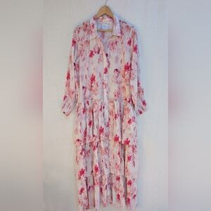 Misa Los Angeles Abigail Pink Floral Tiered Maxi Dress Boho Influencer Size Med