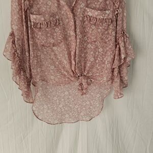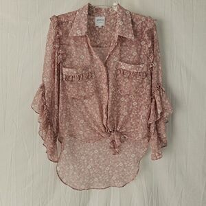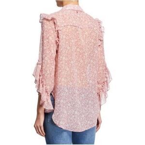 Misa Los Angeles Aeryn Floral Chiffon Button Front Ruffle Top Women's Size XS