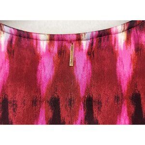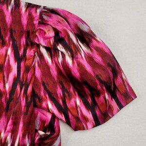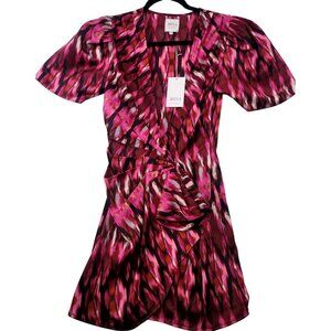 Misa Los Angeles Amina Mini Wrap Dress Pink Red Abstract Short Sleeve USA XS