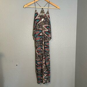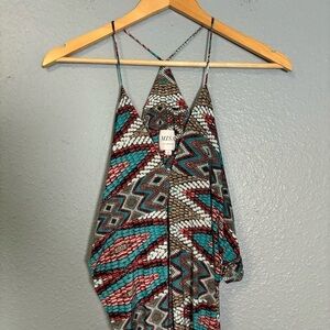 Misa Los Angeles Aztec Teal Colorful Printed Mini Racerback Dress Sz Small Beach