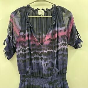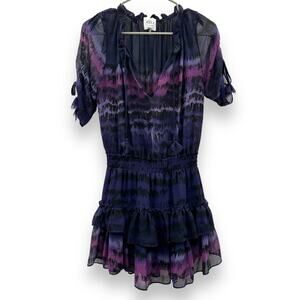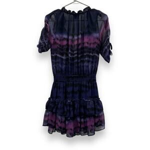 Misa Los Angeles Becca Purple Tie Dye Short Sleeve Tassel Tie Mini Dress Sz XS