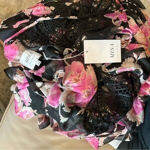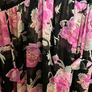 Misa Los Angeles Black and Pink Butterfly Floral Maxi Dress