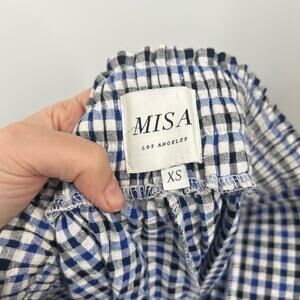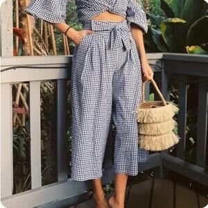 Misa Los Angeles Blue and Black Gingham Wide Leg Crop Pants