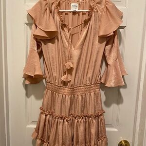 Chic blush dress with delicate ruffles. Perfect for any occasion.