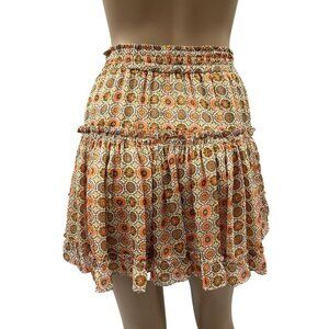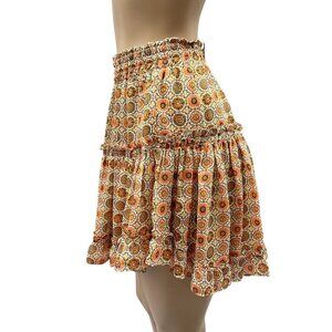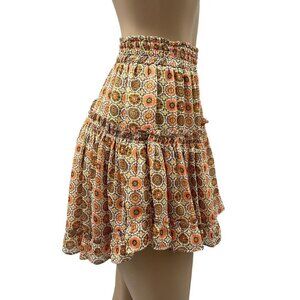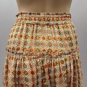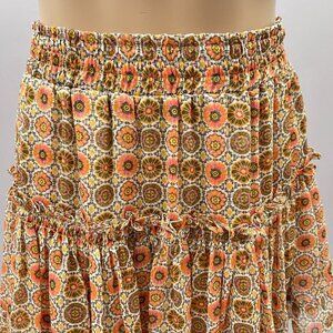 Misa Los Angeles Bohemian Floral Ruffle Skirt Smocked Tiered Polyester Womens L