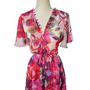 Misa Los Angeles Calista Floral Open Back Flutter Sleeve Maxi Dress Pink Size XS