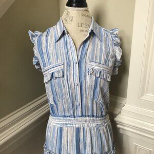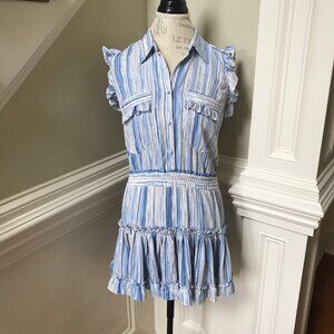 Misa Los Angeles Carlota Mini Dress Womens XS Blue White Stripe Ruffle Tiered
