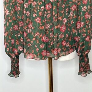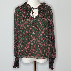 Misa Los Angeles Clio Evergreen Bloom Long Sleeve Blouse Womens Size XS