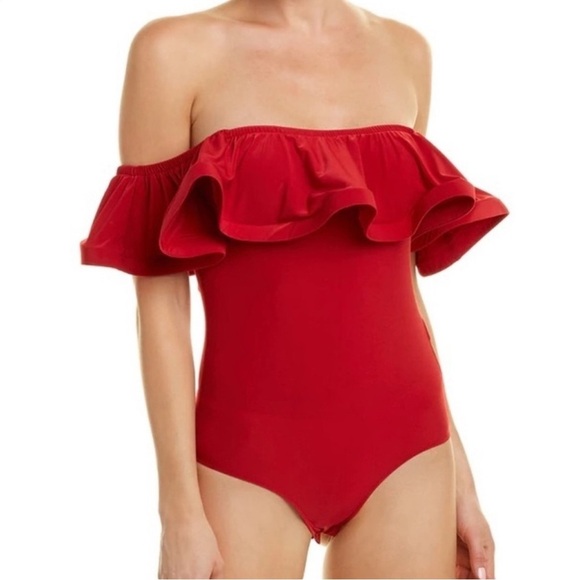 Misa Los Angeles Corcica Ruffle Bodysuit Off Shoulder Red XS Coquette Girly