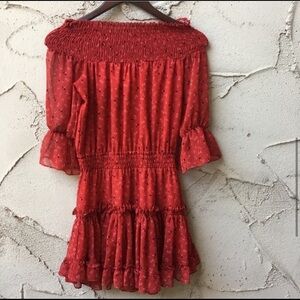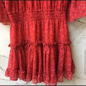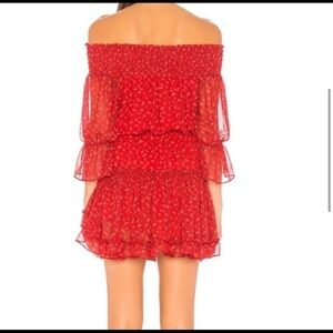 Misa Los Angeles Darla Floral Off Shoulder Red Dress