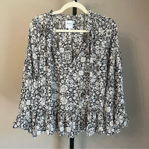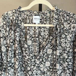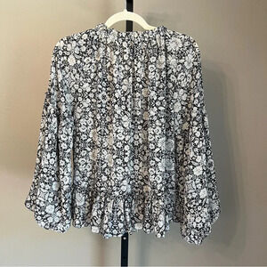Misa Los Angeles Dominik Garden Floral Puff Long Sleeve Blouse Black White Small