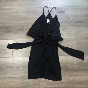 Misa Los Angeles Domino Draped Ruched Black Mini Dress Womens Size Large